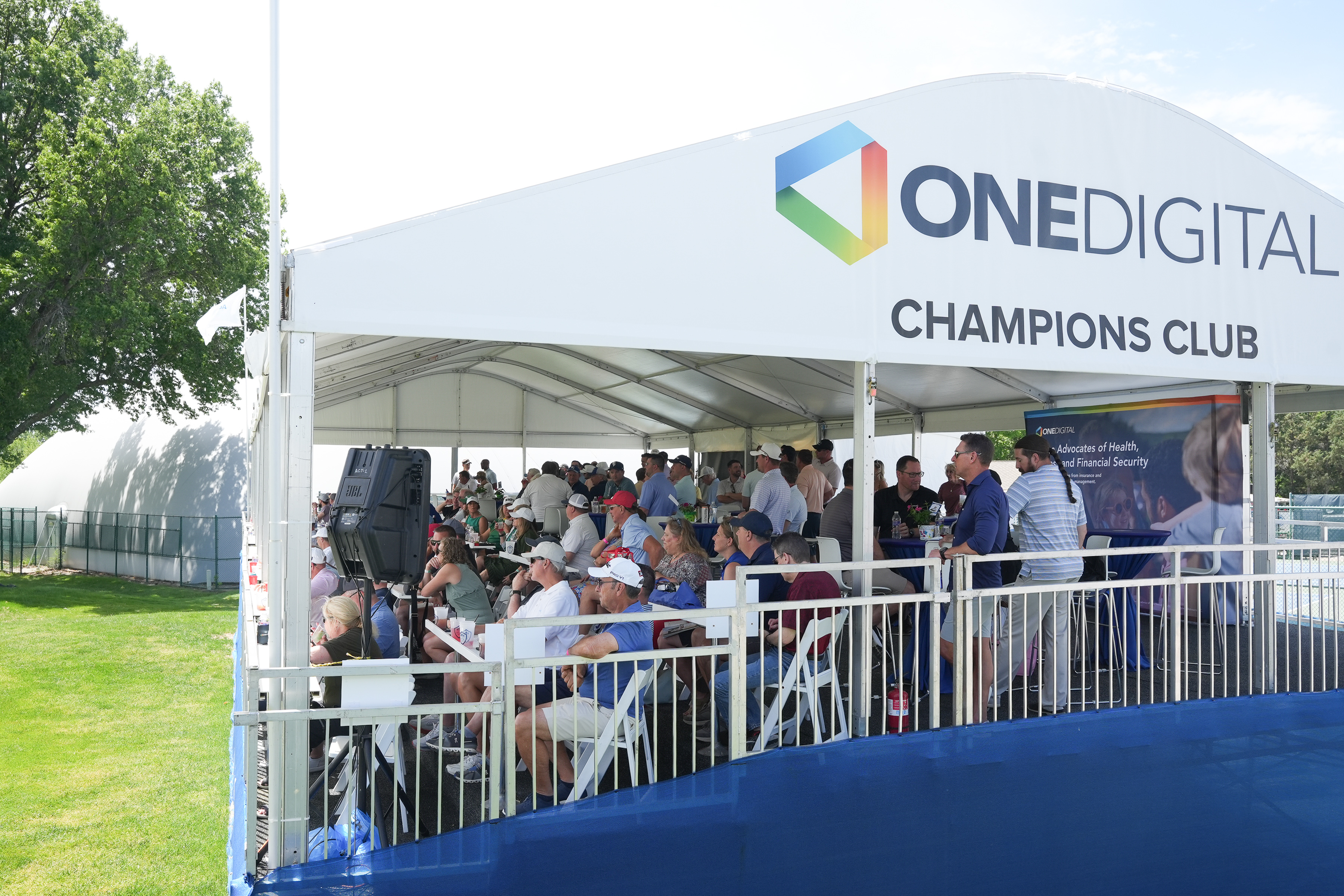 The OneDigital Champions Club is located on the par 5 18th Hole at Blue Hills Country Club and offers a comfortable mix of golf views and hospitality with inclusive food and a full bar service available Thursday through Sunday.